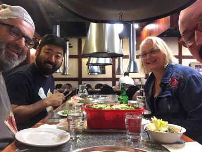 Jin had long promised them he’d take them to Korean BarBQ and today was the day. They LOVED it and Jin loves introducing his culture to new people. We all had some Soju and got a little bit drunk. Loads of laughs and stories.