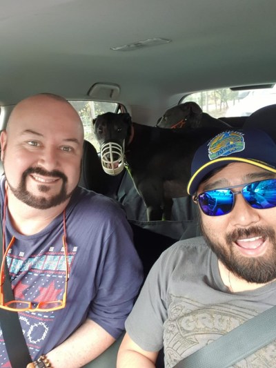 Jin and I took the dogs back to their trainer Charlie who looks after them while we are away. The love going back and saying hi to all the doggies out there. They have their own kennels since they lived there and Charlie always makes sure they get them.