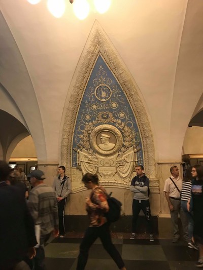 Our only planned adventure was a self guided tour of the Moscow #1 Red Circle Metro Line Stations. There rate 12 in all and I have chosen to share the six most glamorous with you. The trains come every 2-3 minutes and the whole route takes about an hour and a half to do with stops for photography. That AUD$10 three day public transport card has been incredibly handy.