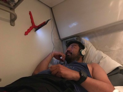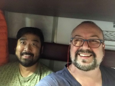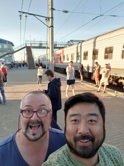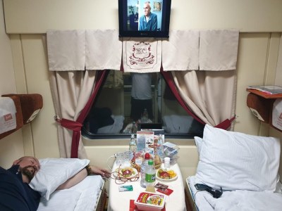 Back to the hotel, packed, checked out, and onto the St Petersburg to Moscow train. Jin sprung for First Class and it was so posh! Here I am dead asleep before we even left the station.
