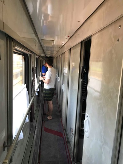 Every second day a train with First class comes but we are in an off day. We are in Second class with very functional room and rudimentary shared bathroom situation without a shower/bath facility.