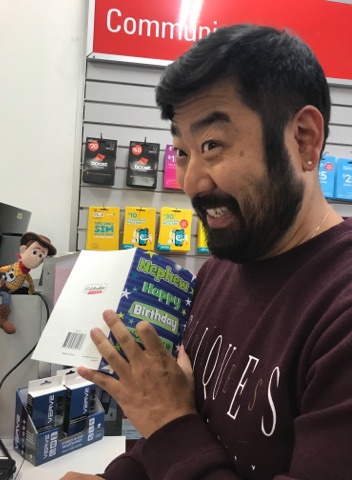 Sent off a bunch of mail at the Post Office. Jin got a card from Aunty Tracey. He’s pretty happy about that.