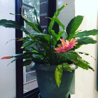 Got up and ready for work, noticed the bathroom Zygocactus is flowering. It’s an offcut from the ones my Mum had on the windowsill of our house. She died in 2001 and I’ve kept them alive since. Sometimes when bits drop off I let them sit for 3 days, swipe the base with honey and pop them in soil. About half of them flourish. They particularly like to be in with other plants. Annoyingly all the others were on the fading side of blooming when I got home from holidays, they must have made a lovely show for the neighbours.