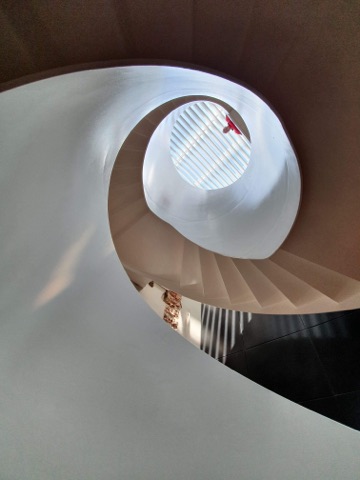 Here are Jin and my portraits of each other on the amazing spiral staircase in the gallery. That’s me at the very top, against the louvre lined skylight.