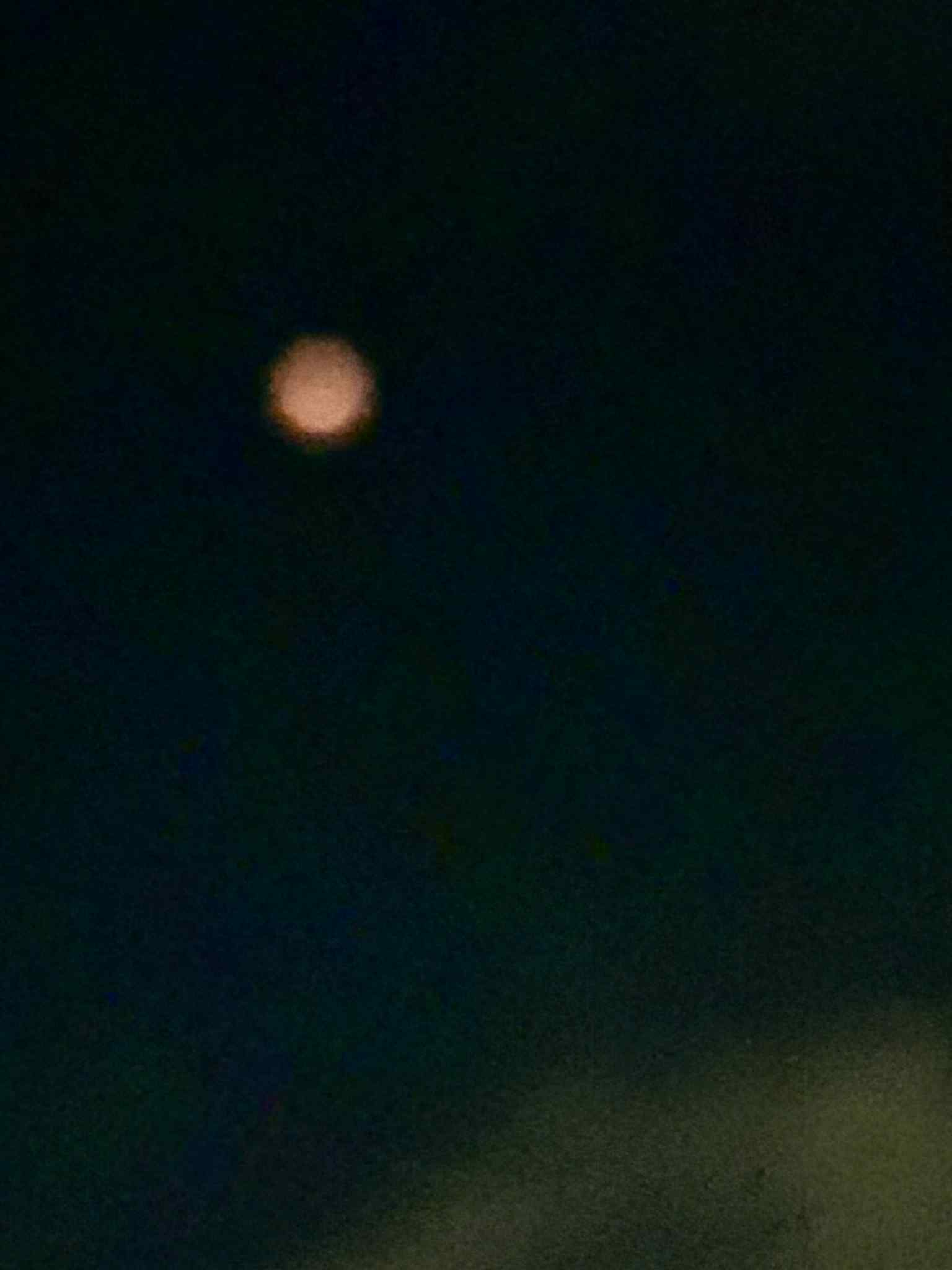 Home. Fed and walked the dogs. Hanging washing, doing another load. I know, does the glamour never end?!? Made myself a cuppa and came here to share. It’s the full moon e3clipse tonight and I got a terrible picture.