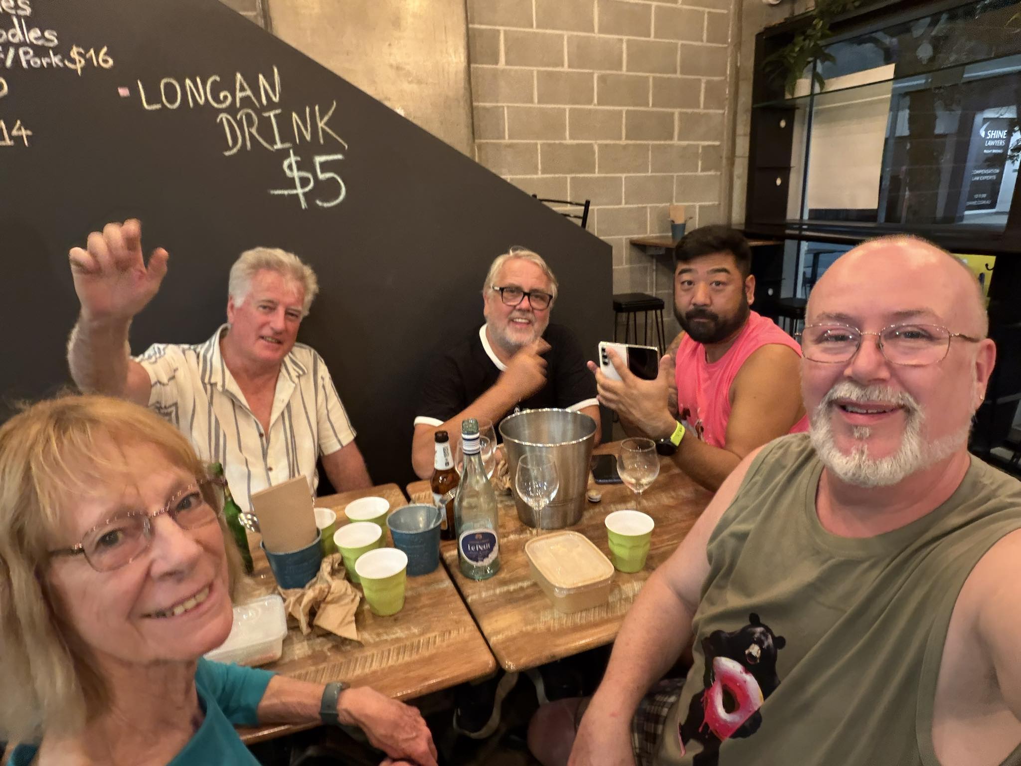 Al Fresco drinks with mates at The Courthouse Hotel. The bottom pic is Glenn, Adrian, Jill, Miss3D. Miss3D is the queen responsible for giving me my first full time weekly drag job. She was a Mum to me and I was a handful of a child. Next year will be her 50th anniversary of drag.