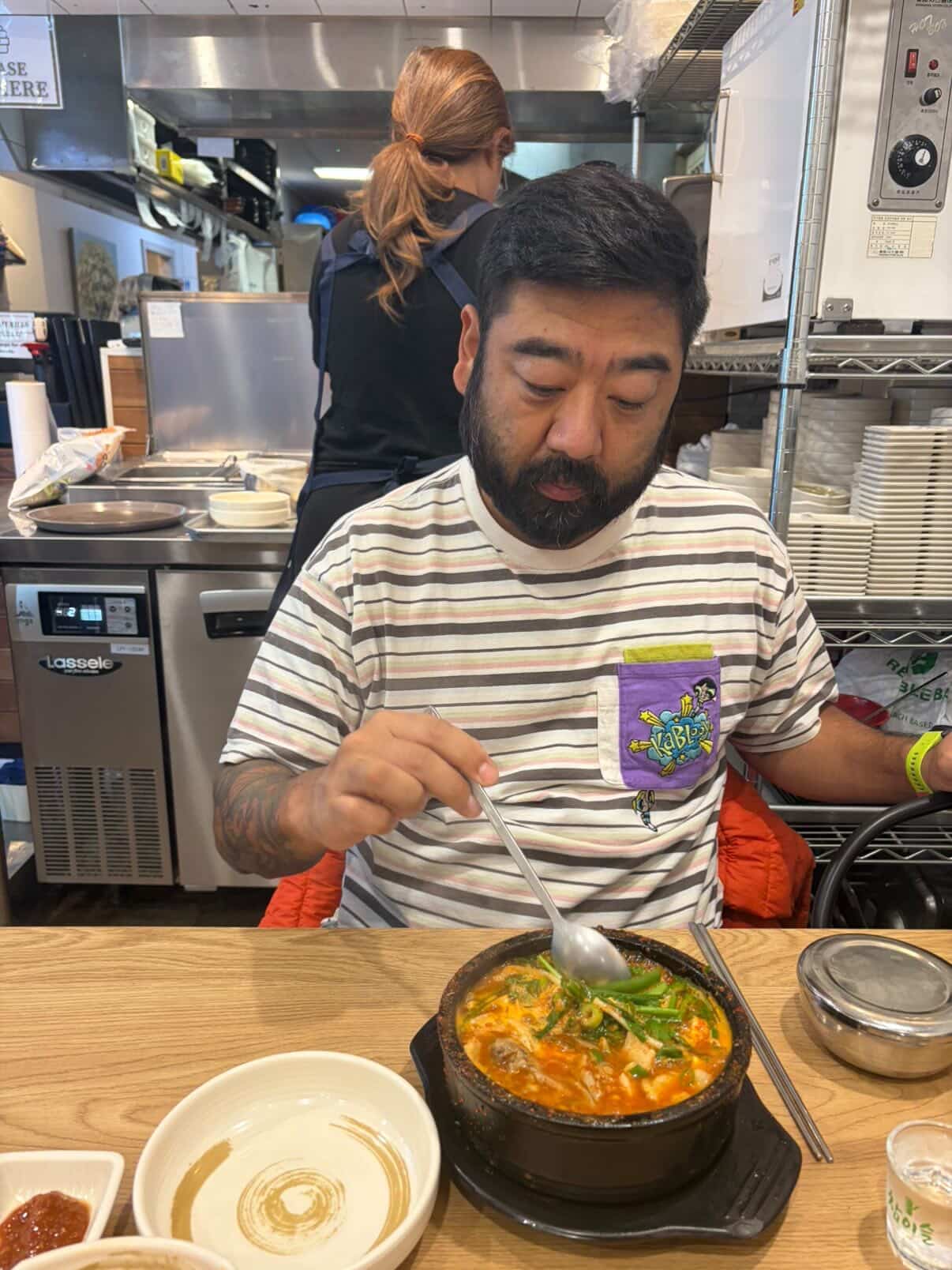 Jin came and collected me at Strathfield station and as it’s a Korean food hub I offered to buy him dinner. He found a Pork Soup shop that made a fair imitation of his great favourite. Because he is so unwell it was a brilliant find and perked him right up. When we finished he wouldn’t let me pay because he was so happy. I had Spicy Cold Noodles, YUM.