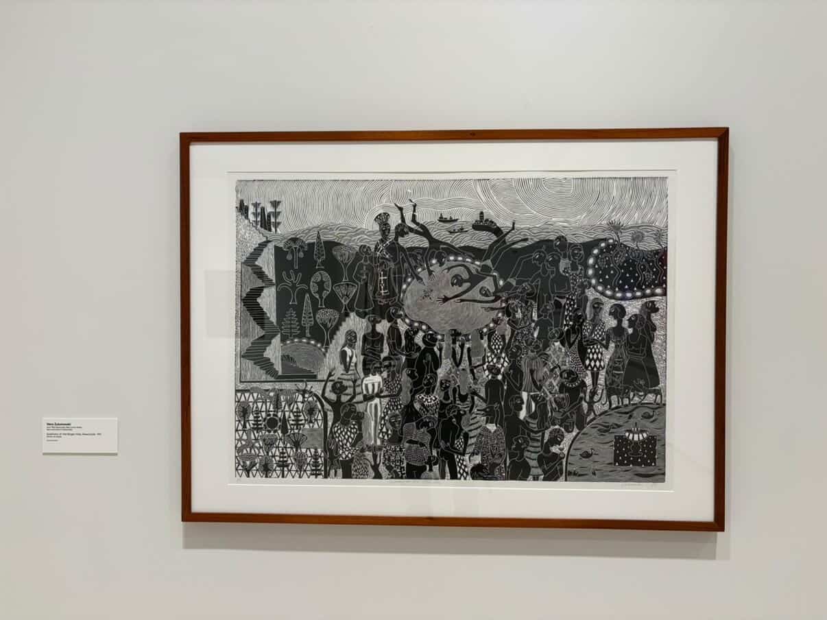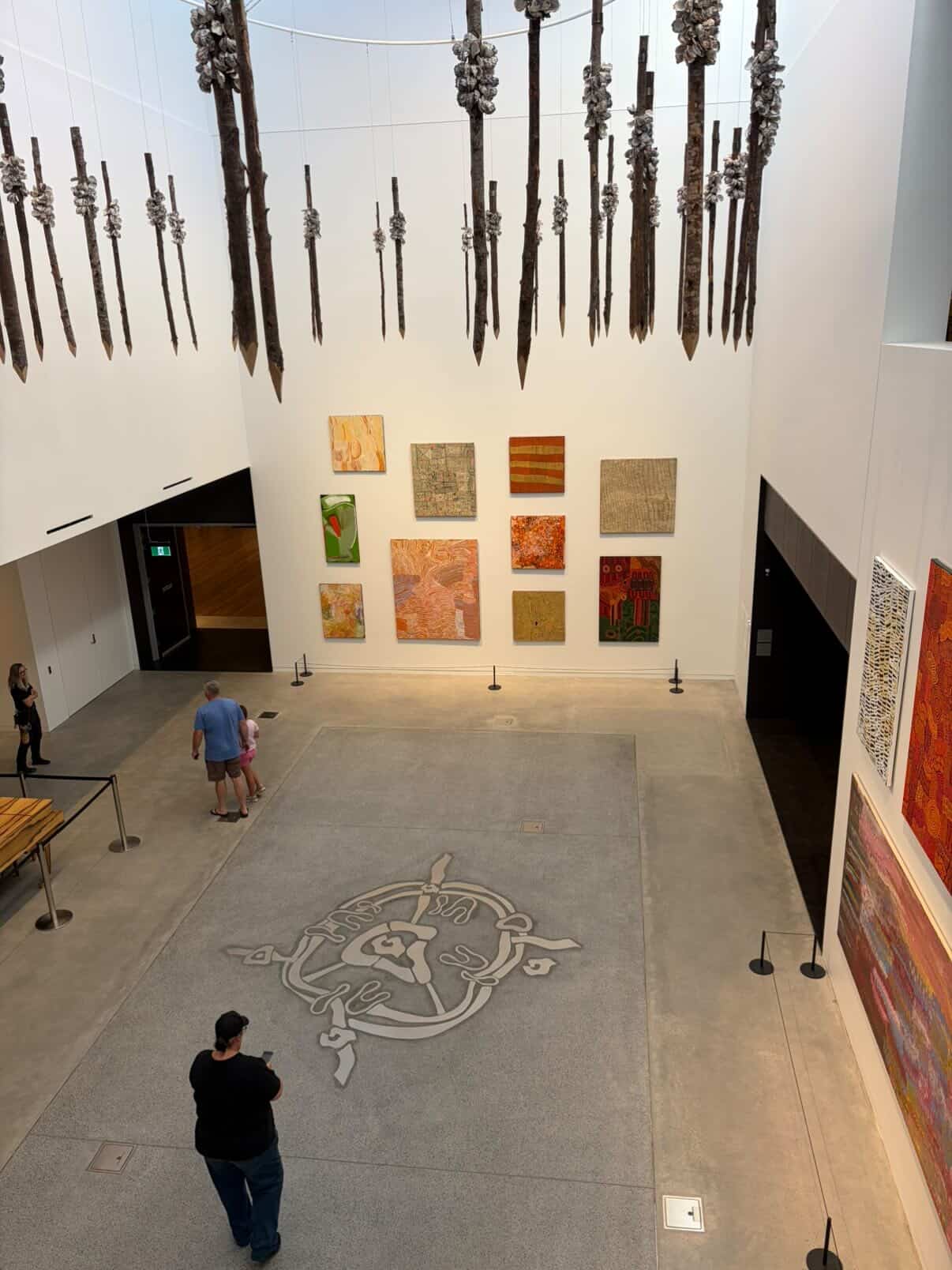 Newcastle is a medium sized city two hours north of Sydney with the world’s largest coal exporting harbour. It has a resident population of around 500,000. Since I was last there around 20 years ago it has made significant strides in gentrification and modernity. The gallery has only reopened this year after its own enormous glow up. We were astounded at the depth and breadth of the collections, so much of it indigenous artworks.