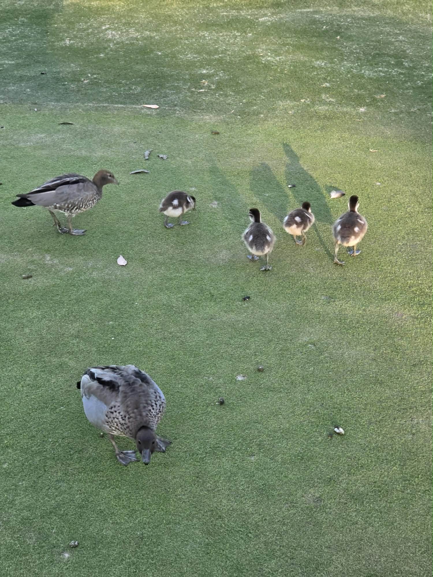 He went for a round of golf. I went to bed for an hour. On his perambulations he caught up with the duck family, ducklings nor firmly teenagers. There were also some rabbits. I know they’re a terrible pest, especially at a golf course, but CUTE!