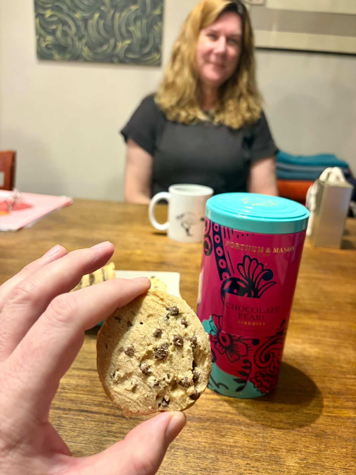 TinaG came over for lunch and catch ups. We spent a lovely couple of hours chatting, eating, sniffing and laughing. Broke out the Fortnum & Mason Biscuits after lunch. WHOA! So glam and delicious.