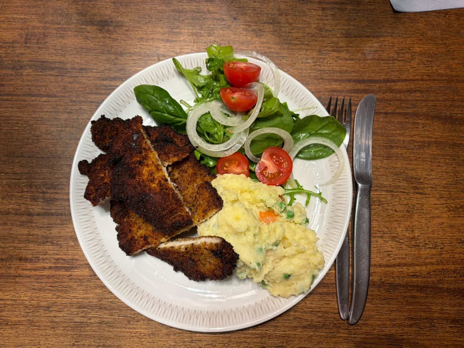 Jin came home early. This bloody cough has him beat. I made him a Chicken Schnitzel lunch, to get some goodness into him.